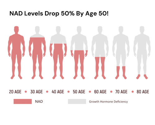 NAD+ levels drop dramatically as you age, by up to 50% every 20 years after age 30. And certain lifestyle factors accelerate the decline even faster.